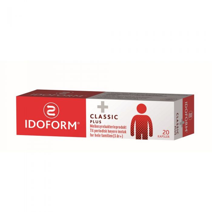 IDOFORM Classic Plus kapsler er et tilskudd av melkesyrebakterier til hverdagsbruk. De vegetabilske kapsler inneholder hver 2,5 milliarder melkesyrebakterier fra fire spesifikke og spesielt utvalgte stammer. Kapslene har en trelagsbeskyttelse som øker sannsynligheten for at de levende bakterier overlever reisen gjennom det sure miljøet i magen og når tarmene. IDOFORM Classic Plus kapsler kan brukes av hele familien (3 år+).Dosering og bruk