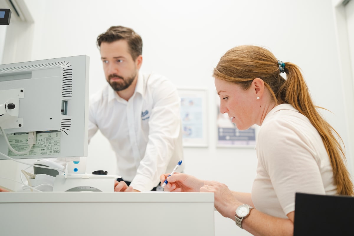 Profesjonell billedtaking. Vårt helsepersonell innhenter nyttig informasjon om flekken og bruker avansert dermatoskopisk bildeteknologi som fanger opp detaljer som ikke er synlige for det blotte øye.
